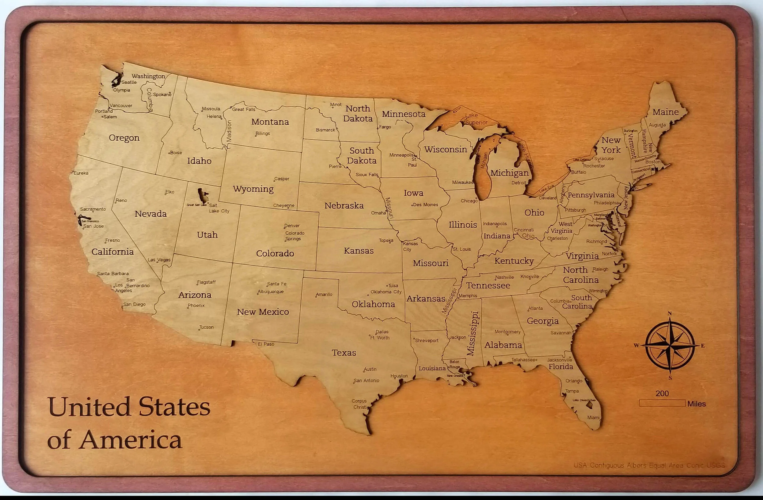 Meridian Map maps are decorative wood maps precisely laser engraved and cut. Each map is designed with cartographic software and hand assembled to showcase a geographical region. Our maps are created from sustainably sourced Birch and Maple Wood, all of which are hand stained and finished to accentuate the grain.